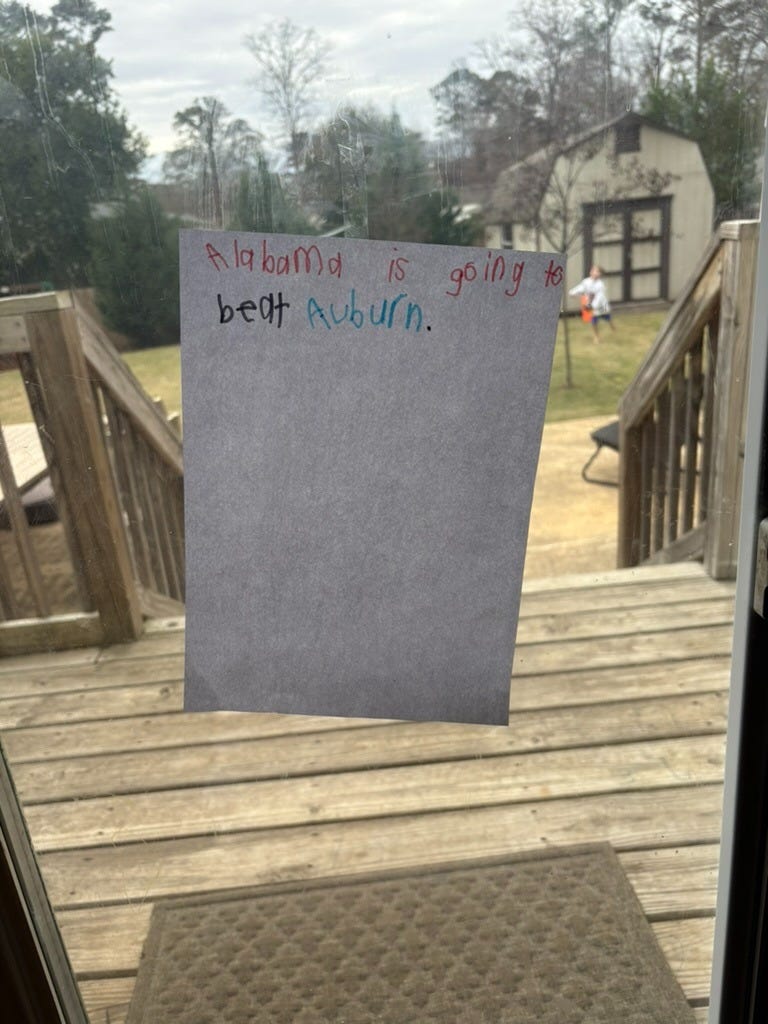 Pictured above is a pre-Iron Bowl spirit sign commissioned by a young Rector. I cannot say behavior during the game would have been up to James’ commands…
